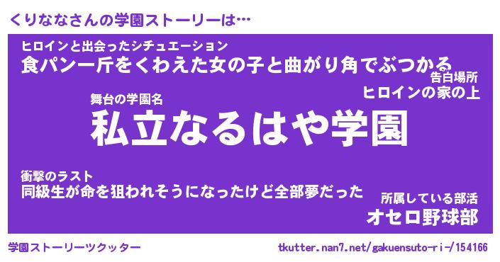 | 伝説のあだ名 | 『不死鳥のスナイパーくりなな』 |