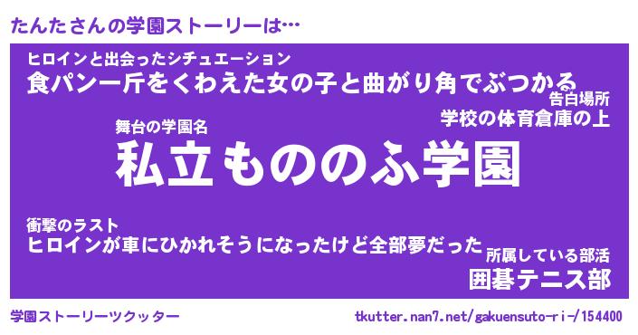 | 男性向けラノベタイトル風あだ名 | 『たんたの憂鬱』 |
