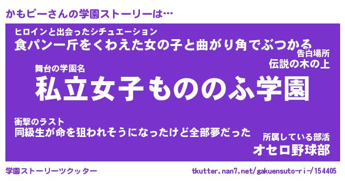| ヘコむあだ名 | 『かもにゅー』『つくし』『かもを』 |