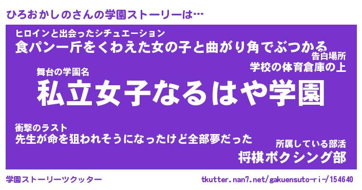| ヒーロー風カッコイイあだ名 | 『スーパーヒロオカシノ』『天弓騎士ヒロ』 |