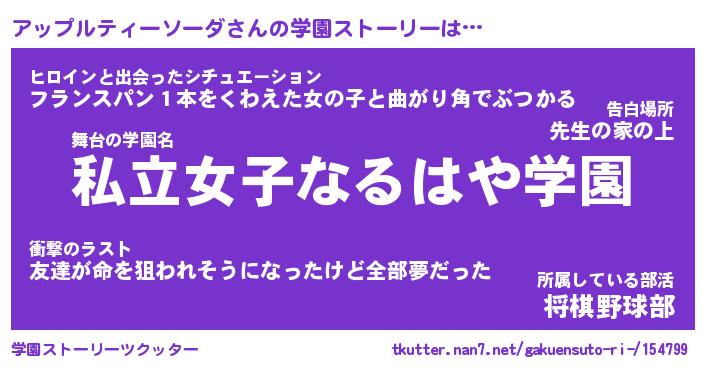 | 伝説のあだ名 | 『封印されしスナイパーアップルティーソーダ』 |