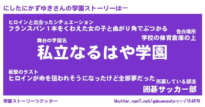 | 肩書あだ名 | 『にしたにかずゆき店長』 |