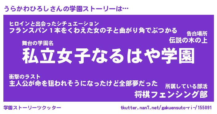 | 伝説のあだ名 | 『封印されしスナイパーうらかわひろし』 |