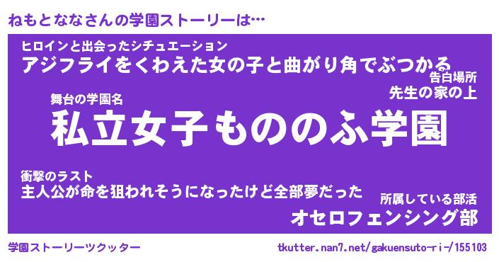 | ファンタジー風あだ名 | 『ネモフェル』『エターナルネモトナナー』 |