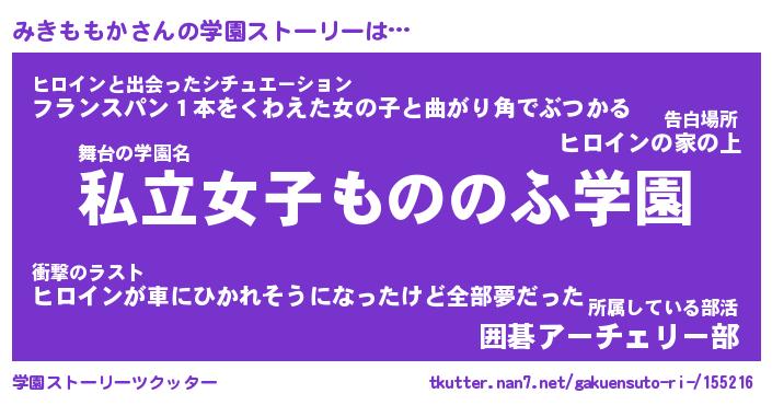 | 女子向けラノベタイトル風あだ名 | 『誰かこのみきももかを説明してください! ~契約から始まるウェディング~』 |