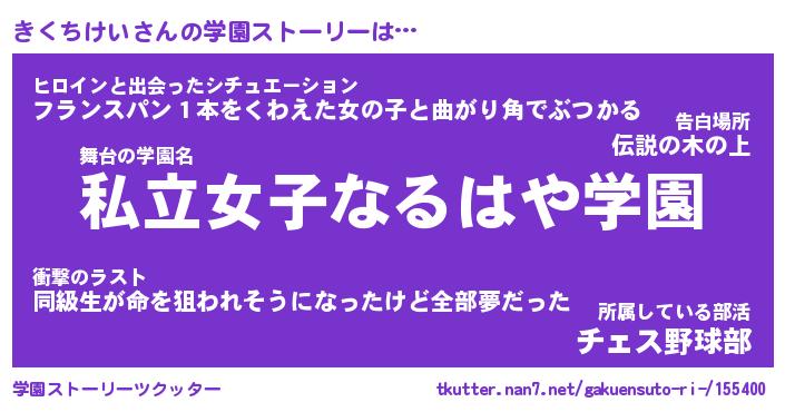 | 伝説のあだ名 | 『封印されしスナイパーきくちけい』 |