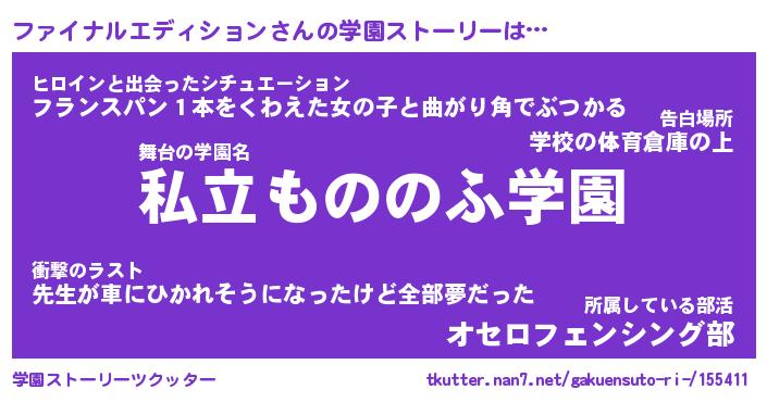 | 男性向けラノベタイトル風あだ名 | 『ファイナルエディションの憂鬱』 |