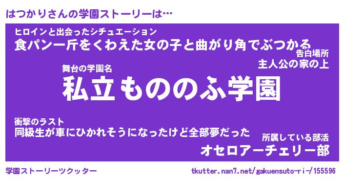 | 男性向けラノベタイトル風あだ名 | 『はつかりの憂鬱』 |