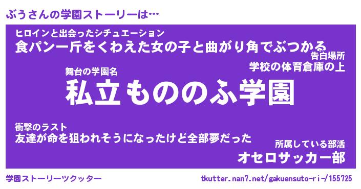 | 女子向けラノベタイトル風あだ名 | 『(仮)ぶうのやんごとなき事情』 |