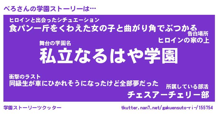 | 男性向けラノベタイトル風あだ名 | 『べろの憂鬱』『ノーゲーム・ノーベロ』 |