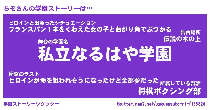 | 男性向けラノベタイトル風あだ名 | 『ちその憂鬱』 |
