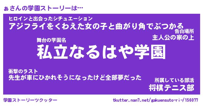 | 告白場所 先生の家の上 …「ふぃぎゅこ」 | 2月17日 06:24 |