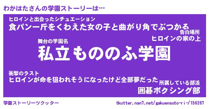 | 男性向けラノベタイトル風あだ名 | 『わかはたの憂鬱』 |