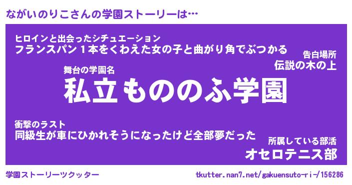 | 男性向けラノベタイトル風あだ名 | 『ながいのりこの憂鬱』 |