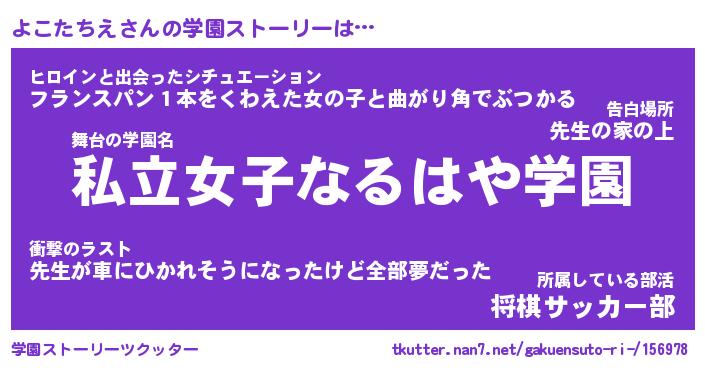 | 伝説のあだ名 | 『封印されしスナイパーよこたちえ』 |