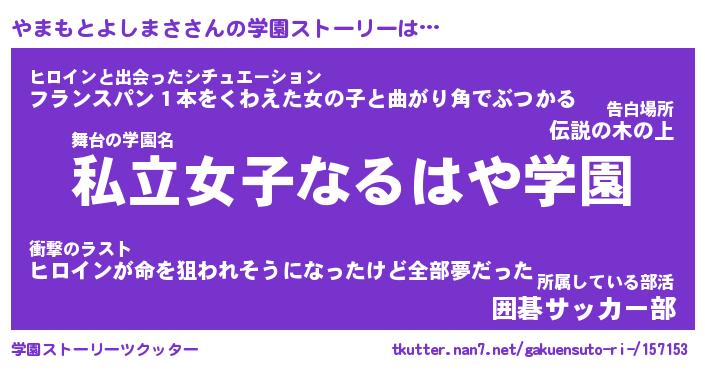 | 女子向けラノベタイトル風あだ名 | 『誰かこのやまもとよしまさを説明してください! ~契約から始まるウェディング~』 |