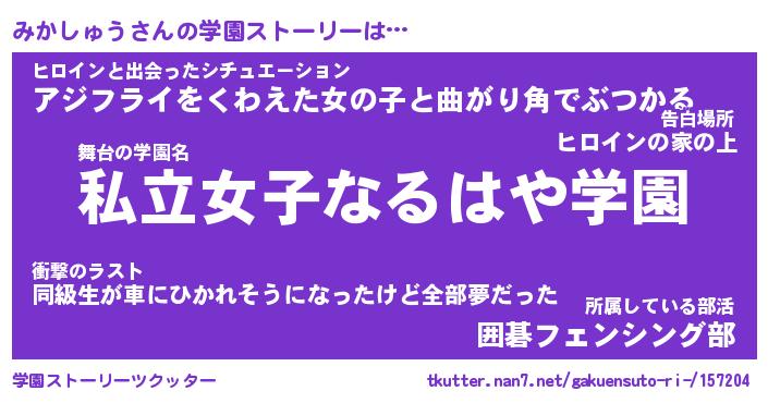 | 告白場所 先生の家の上 …「ふぃぎゅこ」 | 2月17日 06:24 |