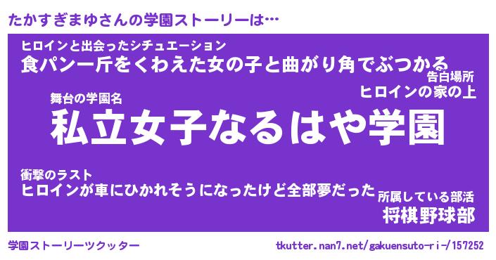 | 女子向けラノベタイトル風あだ名 | 『誰かこのたかすぎまゆを説明してください! ~契約から始まるウェディング~』 |