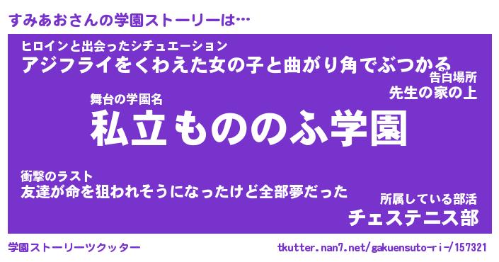 | 女子向けラノベタイトル風あだ名 | 『(仮)すみあおのやんごとなき事情』 |