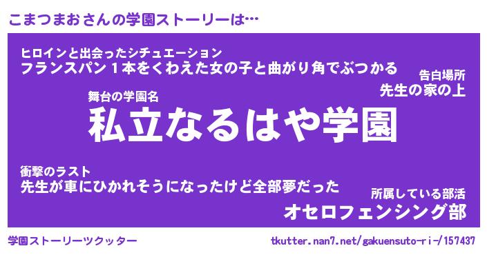 | 告白場所 先生の家の上 …「ふぃぎゅこ」 | 2月17日 06:24 |