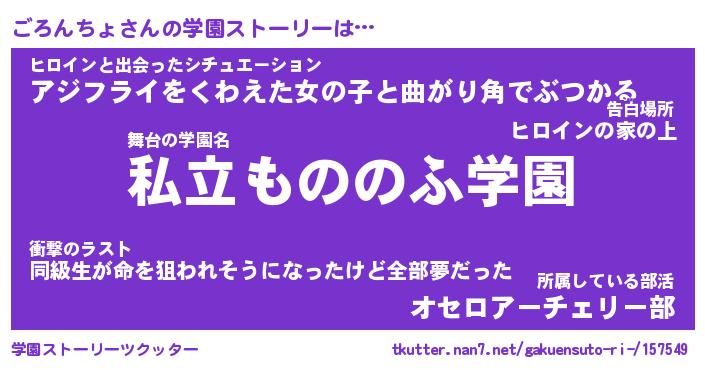 | 男性向けラノベタイトル風あだ名 | 『ごろんちょの憂鬱』 |