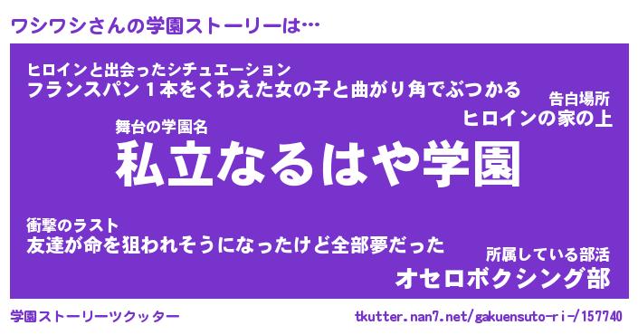 | ファンタジー風あだ名 | 『ワシフェル』『エターナルワシワシー』 |