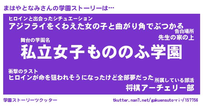 | 女子向けラノベタイトル風あだ名 | 『まはやとなみ姫と円卓の騎士』 |