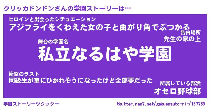 | 男性向けラノベタイトル風あだ名 | 『クリッカドンドンの憂鬱』 |