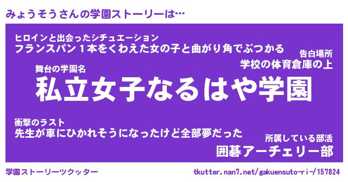 | 告白場所 先生の家の上 …「ふぃぎゅこ」 | 2月17日 06:24 |