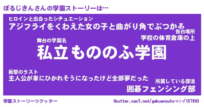 | 女子向けラノベタイトル風あだ名 | 『(仮)ぼるじきんのやんごとなき事情』 |