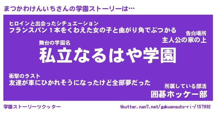 | 女子向けラノベタイトル風あだ名 | 『(仮)まつかわけんいちのやんごとなき事情』 |