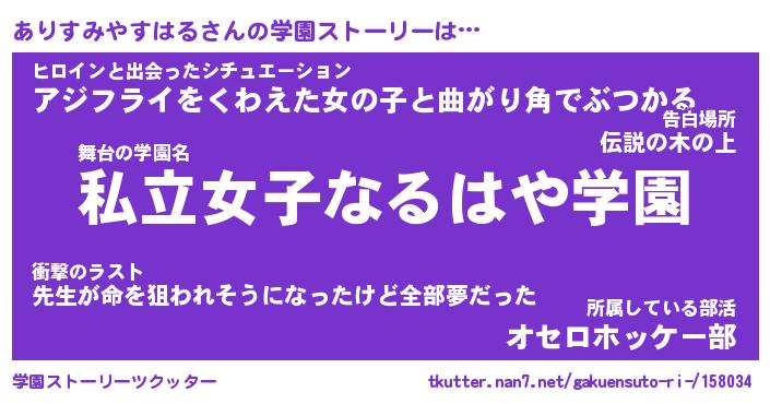 | 女子向けラノベタイトル風あだ名 | 『ありすみやすはる姫と円卓の騎士』 |