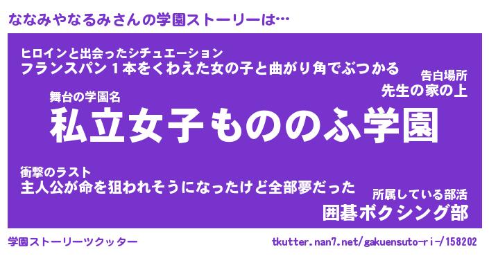 | 女子向けラノベタイトル風あだ名 | 『誰かこのななみやなるみを説明してください! ~契約から始まるウェディング~』 |