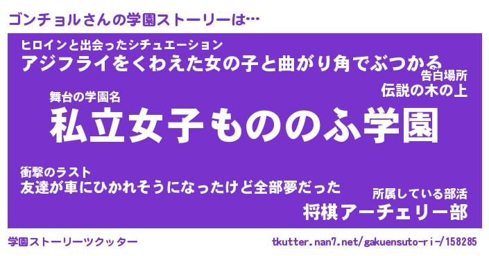 | 男性向けラノベタイトル風あだ名 | 『ゴンチョルアートオンライン』 |