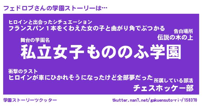 | 女子向けラノベタイトル風あだ名 | 『フェドロブ姫と円卓の騎士』 |