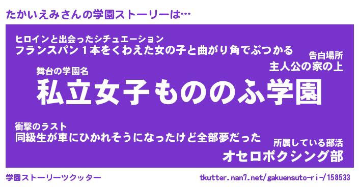 | 告白場所 先生の家の上 …「ふぃぎゅこ」 | 2月17日 06:24 |