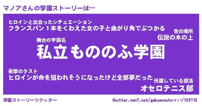 | 男性向けラノベタイトル風あだ名 | 『マノアの憂鬱』 |