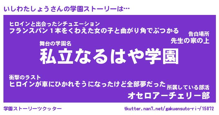 | 男性向けラノベタイトル風あだ名 | 『いしわたしょうの憂鬱』 |