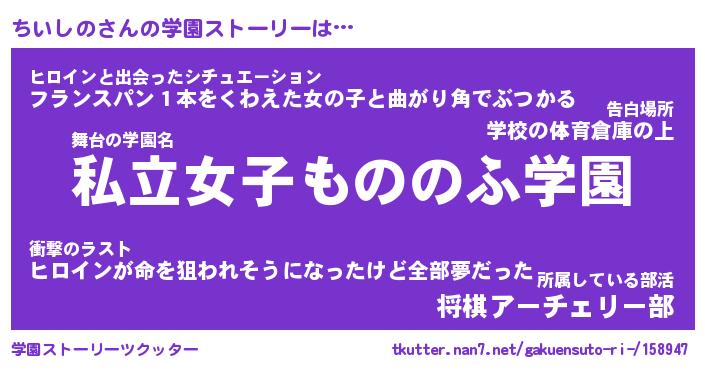 | ファンタジー風あだ名 | 『チイフェル』『エターナルチイシノー』 |