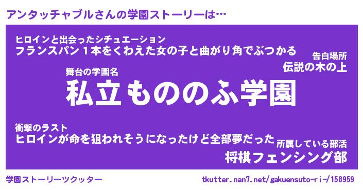 | 男性向けラノベタイトル風あだ名 | 『アンタッチャブルの憂鬱』 |