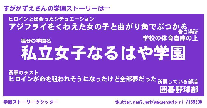 | 女子向けラノベタイトル風あだ名 | 『誰かこのすがかずえを説明してください! ~契約から始まるウェディング~』 |