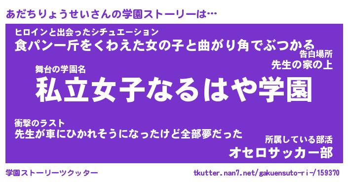| 女子向けラノベタイトル風あだ名 | 『誰かこのあだちりょうせいを説明してください! ~契約から始まるウェディング~』 |