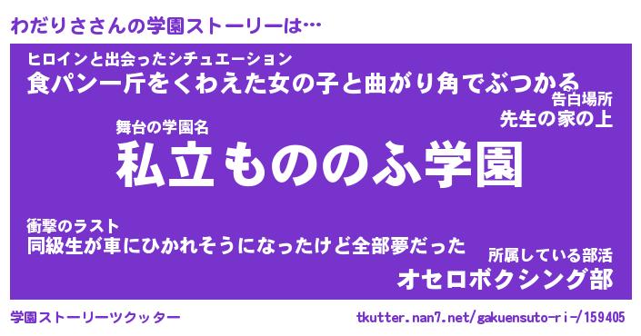 | 女子向けラノベタイトル風あだ名 | 『(仮)わだりさのやんごとなき事情』 |