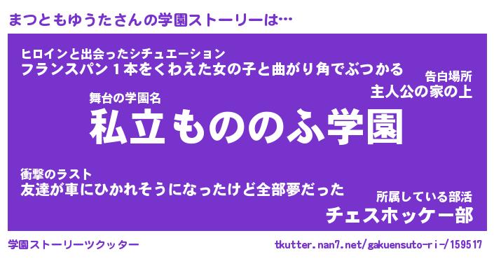 | 女子向けラノベタイトル風あだ名 | 『(仮)まつともゆうたのやんごとなき事情』 |