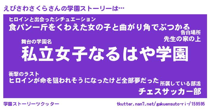 | 女子向けラノベタイトル風あだ名 | 『えびさわさくら姫と円卓の騎士』 |
