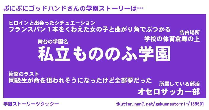 | 男性向けラノベタイトル風あだ名 | 『ぷにぷにゴッドハンドの憂鬱』 |