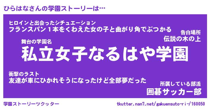 | 女子向けラノベタイトル風あだ名 | 『ひらはな姫と円卓の騎士』 |