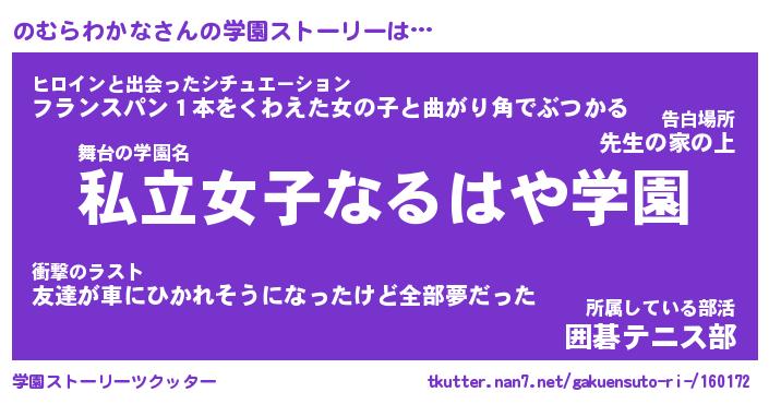 | ヒーロー風カッコイイあだ名 | 『スーパーノムラワカナ』『銀牙騎士ノム』 |