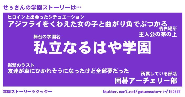 | 告白場所 先生の家の上 …「ふぃぎゅこ」 | 2月17日 06:24 |