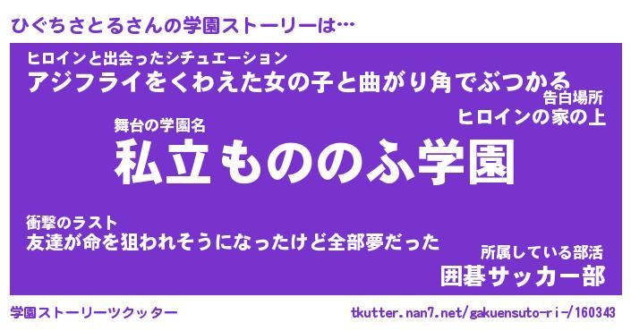 | 男性向けラノベタイトル風あだ名 | 『ひぐちさとるの憂鬱』 |